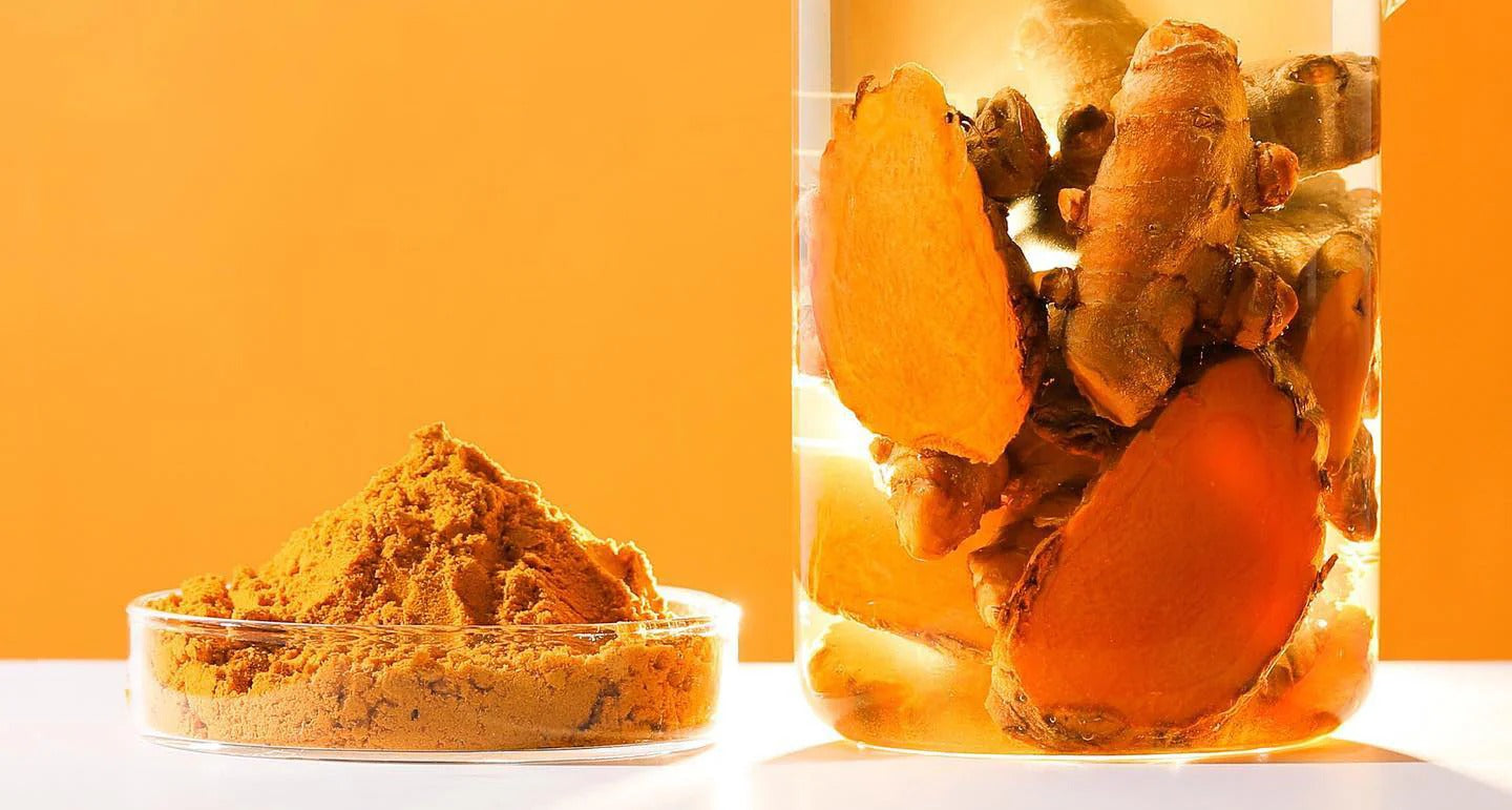 Curcumin also has the ability to partially inhibit the formation of excessive melanin pigment, thereby helping to restore the skin's natural healthy luminosity.
